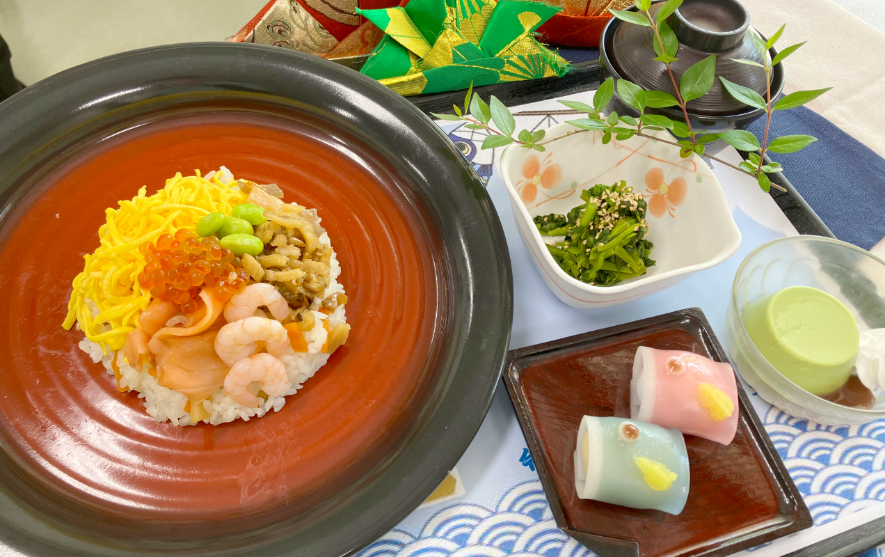 行事に合わせたイベント食の他に、ユニットでのおやつ作りや天ぷらの実演、タケノコ焼き、秋刀魚焼きなど五感を刺激するお食事の提供にも心がけています。