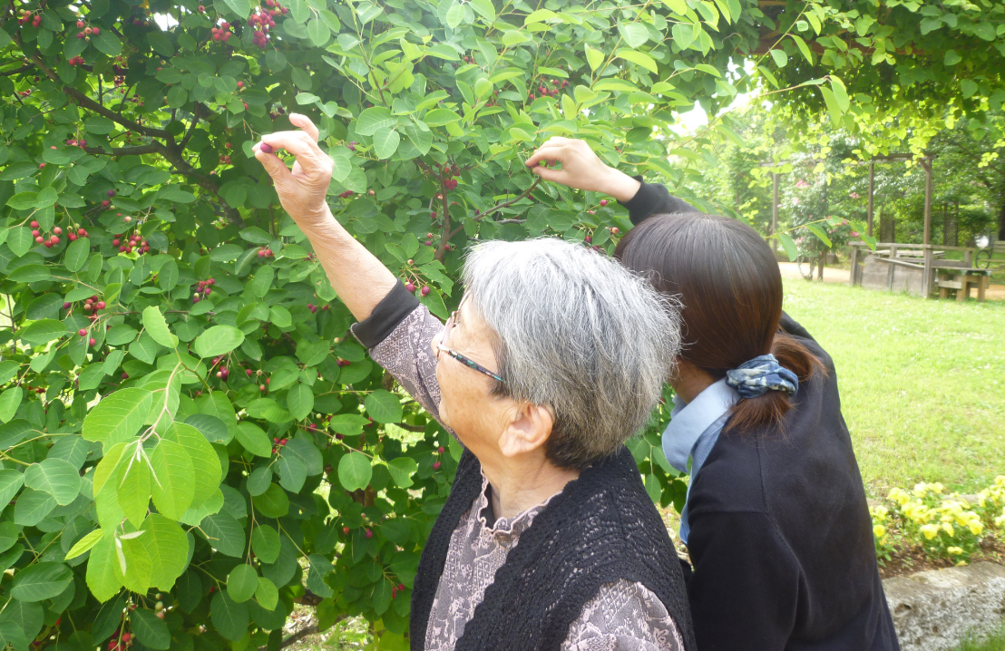 草花や野菜を楽しみながら育てる「園芸セラピー」や、可愛い動物達と触れ合い癒される「アニマルセラピー」など、緑溢れる3000坪のケアガーデン“みんなの庭”を利用した、開放的な屋外でのプログラムや、五感に心地よい刺激を与えるアイテムが揃った癒し空間「センサリールーム」や、赤ちゃんのような人形を使った「ドールセラピー」、歌や楽器を演奏する「音楽セラピー」など、屋内で日常的に行えるプログラムがあります。